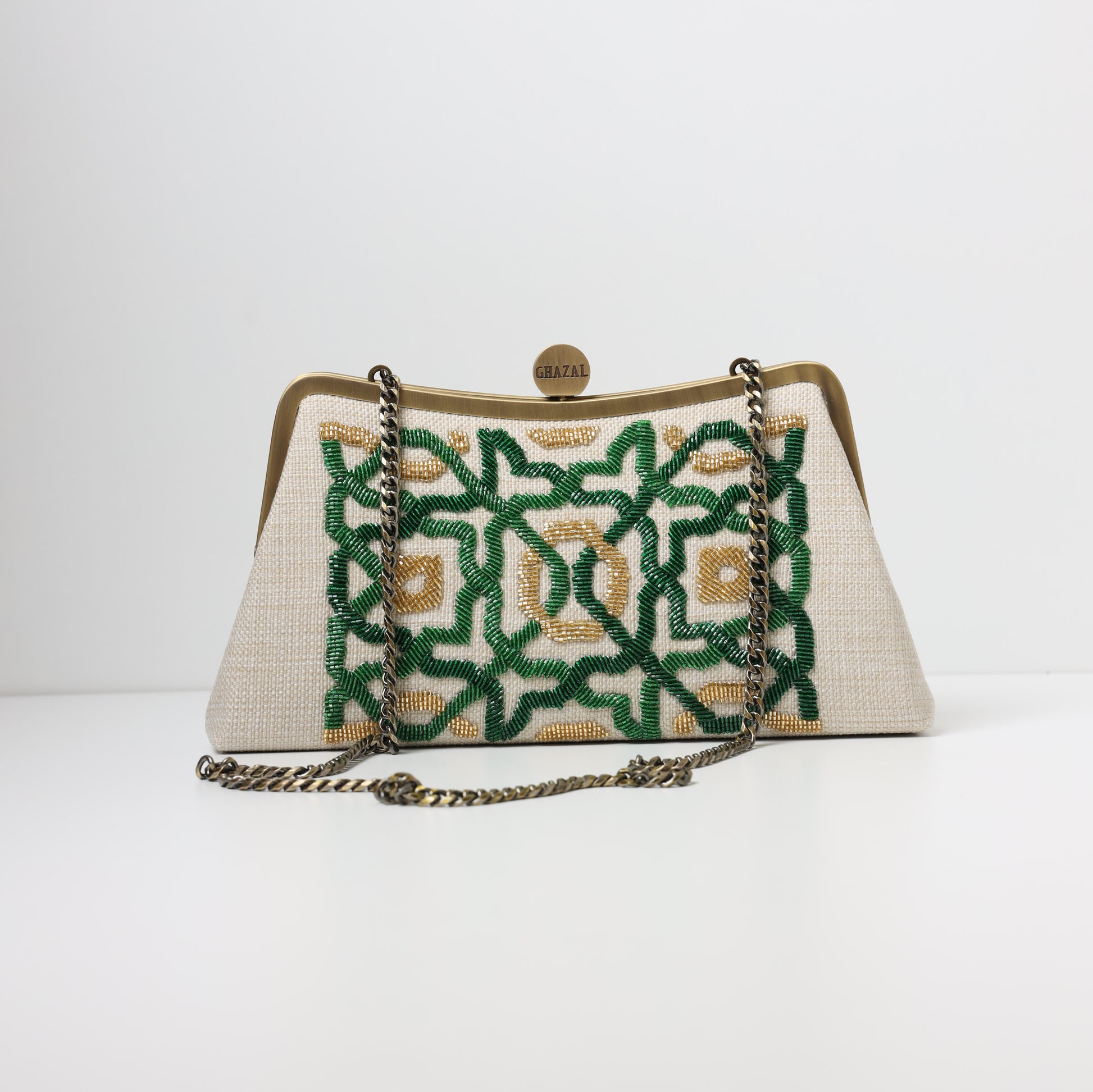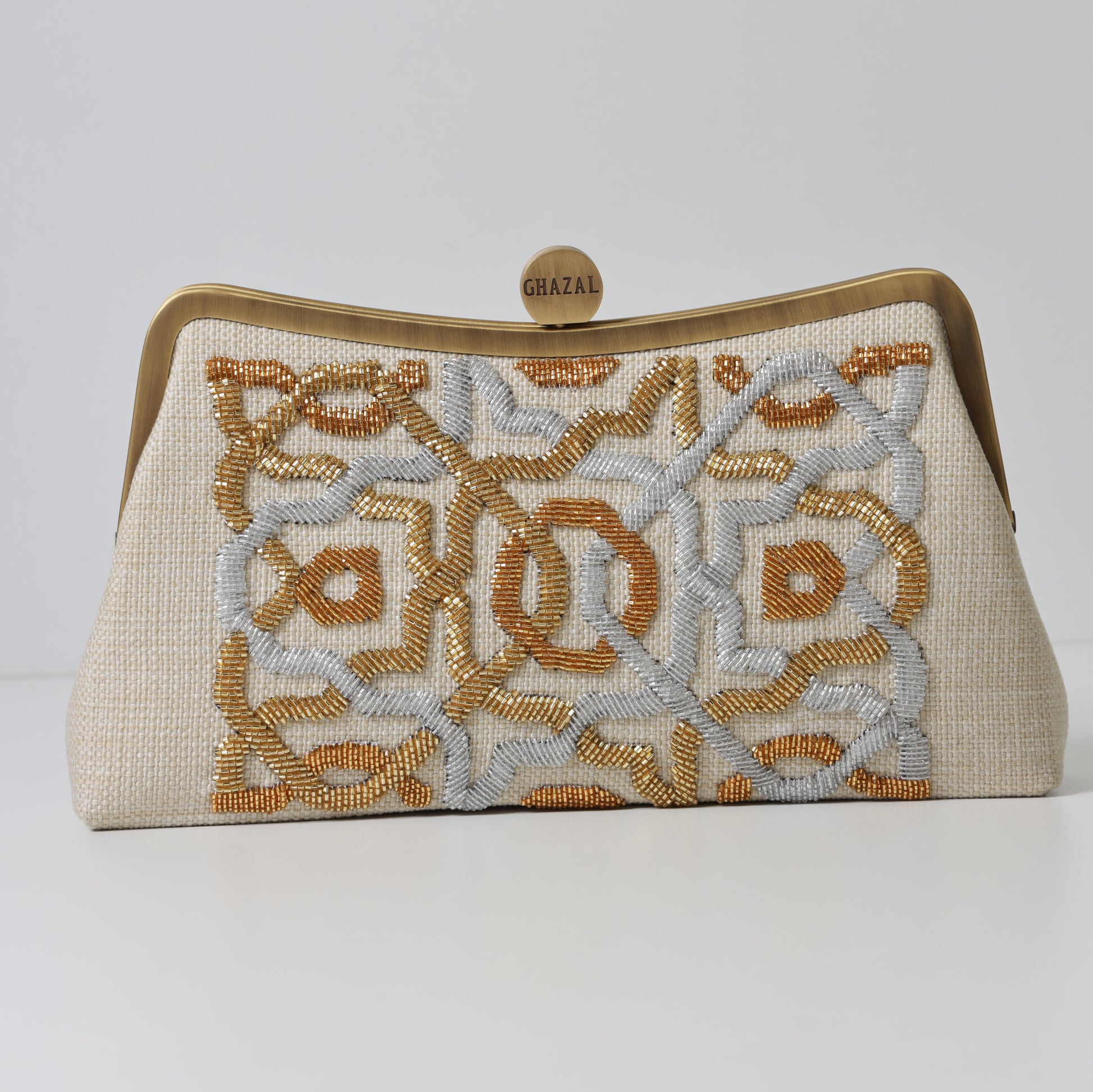 The ARABESQUE CLUTCH is a timeless statement piece, handcrafted with intricate embroidery and beadwork inspired by classic arabesque patterns. Each bag is made with meticulous detail, blending heritage with modern elegance.