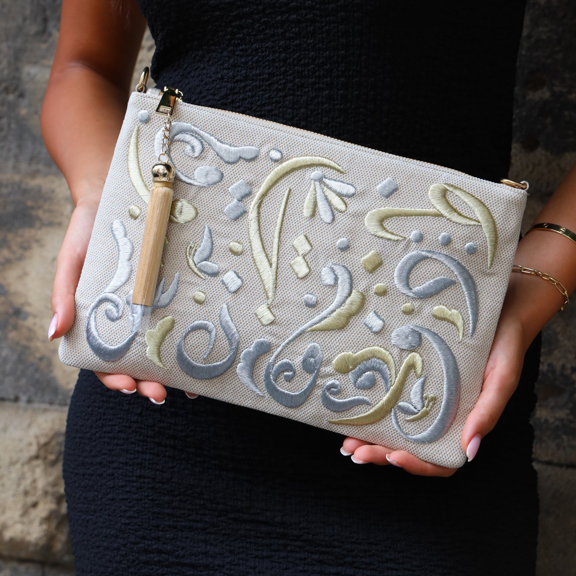 High quality embroidered with our exclusive floral Diwani random calligraphy design.