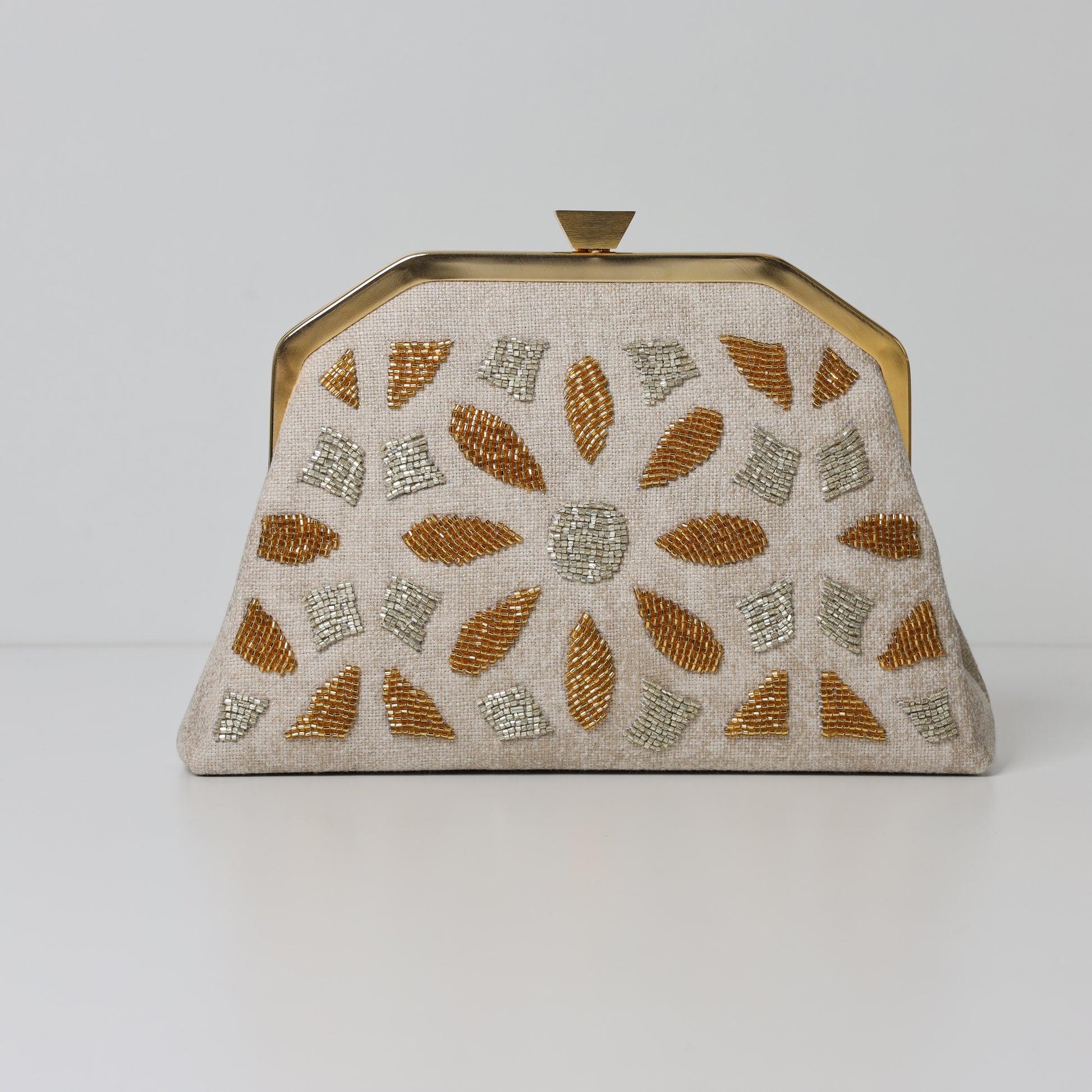 The FLORAL ANDALUSIA CLUTCH is a timeless statement piece, handcrafted with beadwork inspired by classic patterns. Each bag is made with meticulous detail, blending heritage with modern elegance beaded embroidery on both sides.