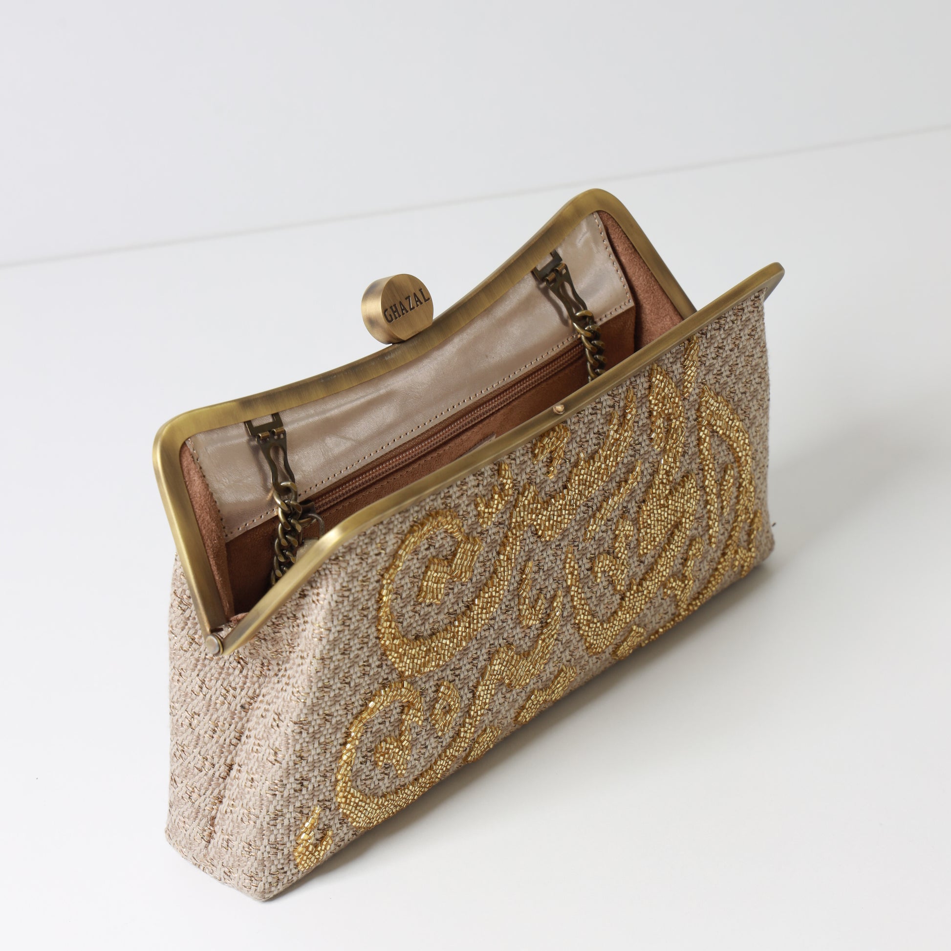 This unique clutch is designed for the most precious person-your mother. It is intricately embroided with the wonderful phrase,'Sett El Habayeb'. It serves as a memorable gift she can proudly use for ant party or event.